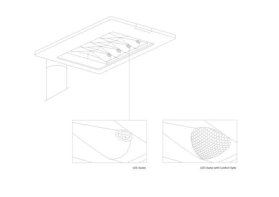 Highly efficient and suitable for everyday use: the luminaire can be opened without use of any tools via an elbow lever lock. This allows system components like the electrical and its LED units to be simply replaced.
