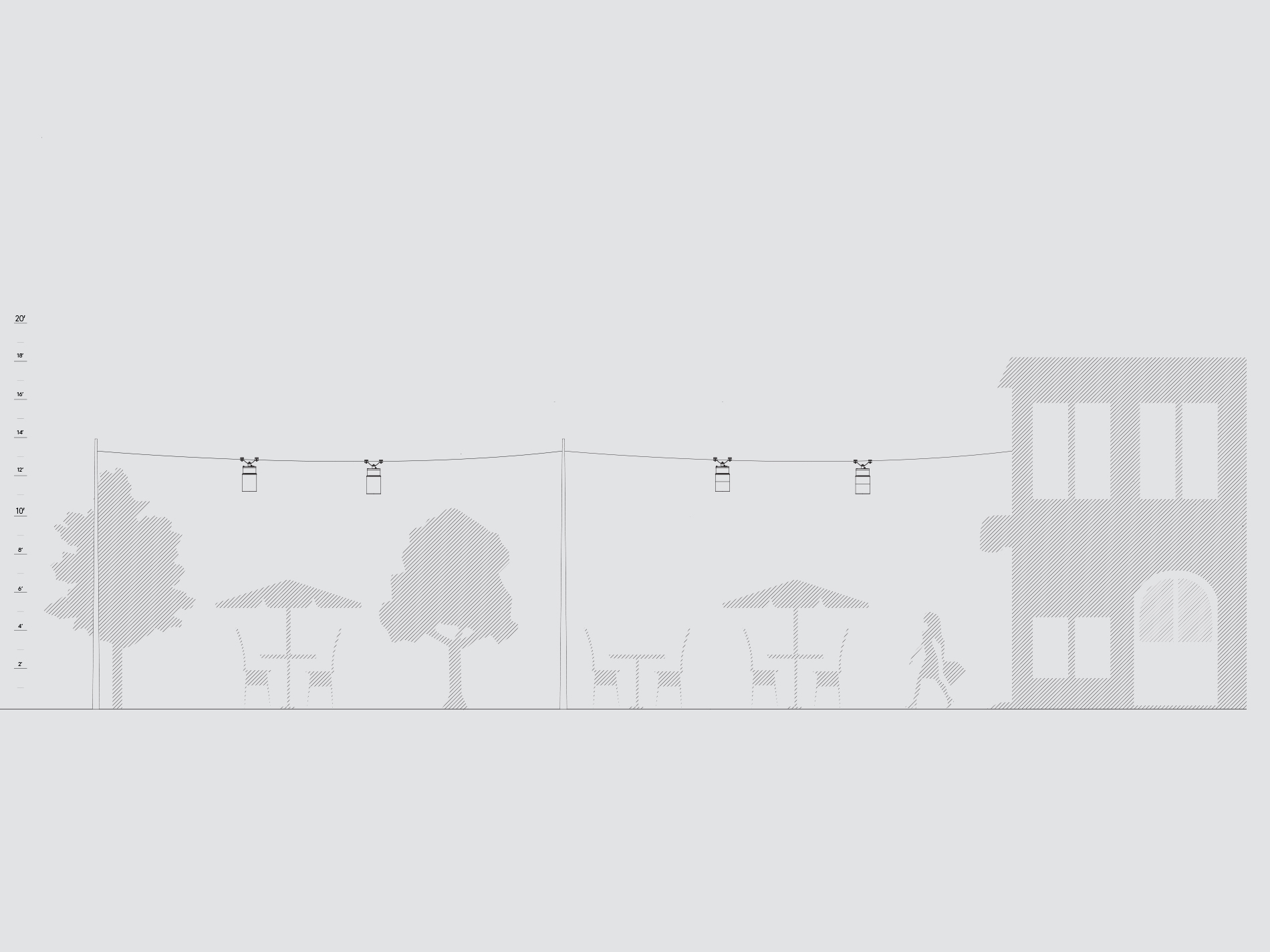 Lanova Catenary is an attractive luminaire perfect for a designer needing improved visual guidance and purposeful light free of intrusive poles that destroy the look of an open space. The Lanova Catenary creates excellent visibility and enhanced safety and security in large public areas such as parks, plazas and campus squares.