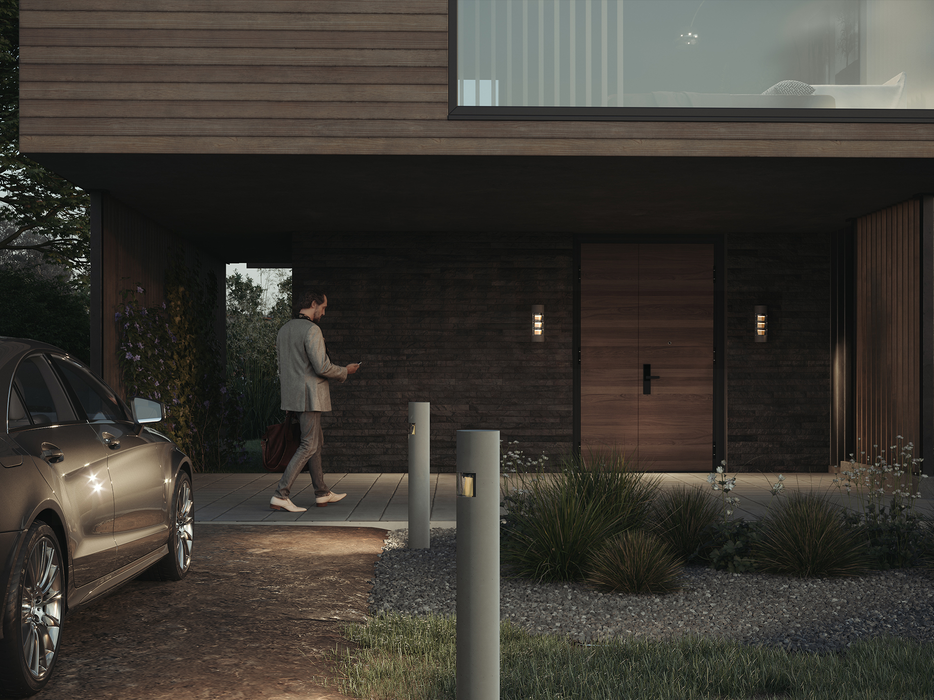Die extrem reduzierte Form der Line passt sich durch entsprechende Wahl von Material und Optiken wie ein Chamäleon an die Architektur an. Das macht die Poller, Wandein- und Wandanbauleuchten zu idealen Werkzeugen für gebäudenahes Licht.