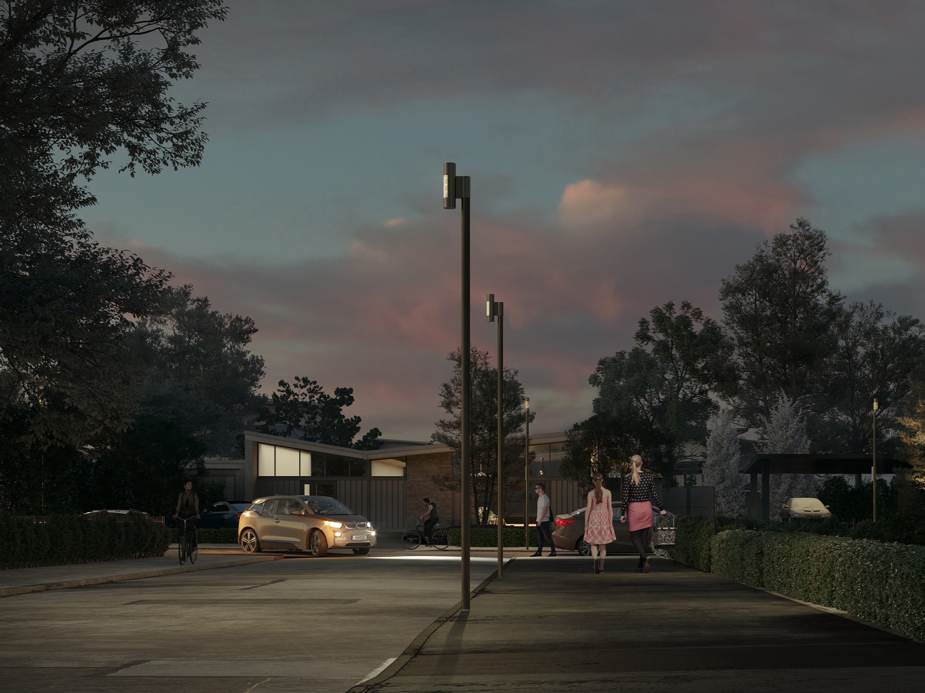 Die neue Leuchtenfamilie Line verfolgt einen radikalen Ansatz in Sachen Nachhaltigkeit: Zeitloses, minimalistisches Design für lange Lebensdauer bei reduziertem Materialaufwand und hoher Lichtqualität. Sie beruht auf einem völlig neu gedachten Grundkonzept, das auf einen konventionellen Leuchtenkopf verzichtet und die Optiken als vertikale Linie in den Mast integriert.